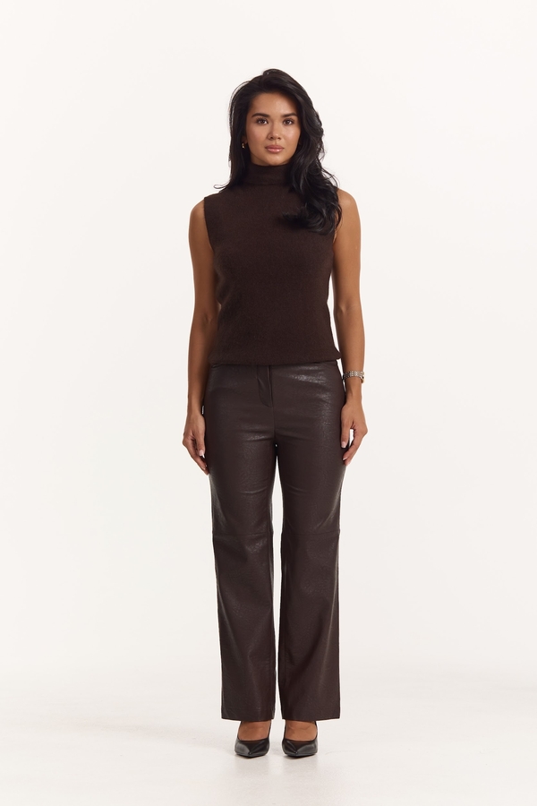 Прямые брюки с высокой посадкой из мягкой экокожи. Эффектные и универсальные — легко комбинируются с любым верхом.
